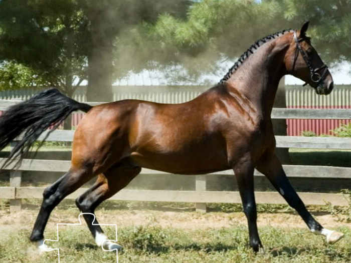 Today is used in the show ring, being an extremely successful as harness horse. They can also show their skills in show jumping and dressage. Though almost extinct, the Hackney is raising in numbers due to their versatility in many horse sports. The puzzle you`re about to solve is about a magnificent, elegant and fast horse breed with a brisk, springy walk.