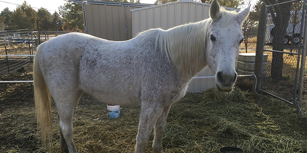 ">I was wondering if any of you had an idea on why my 17-year-old Arabian mares hips won`t fill out. We got her pretty skinny and have been giving a decent amount of grain and cool calories for about 2 months. Her chest, shoulders, and topline are looking much better but her hips are not filling out. We dewormed her with equinox when we got her. What do you think? Thanks! Here is a pic of her:)